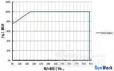 一般情況下,LED 驅(qū)動器的標稱功率是指額定環(huán)境、額定電壓情況下測得的數(shù)據(jù)??紤]到不同客戶會有不同的應(yīng)用,多數(shù) LED 驅(qū)動器供應(yīng)商會在自家的產(chǎn)品規(guī)格書上提供功率降額曲線(常見的有負載 vs 環(huán)境溫度降額曲線及負載 vs 輸入電壓降額曲線)。